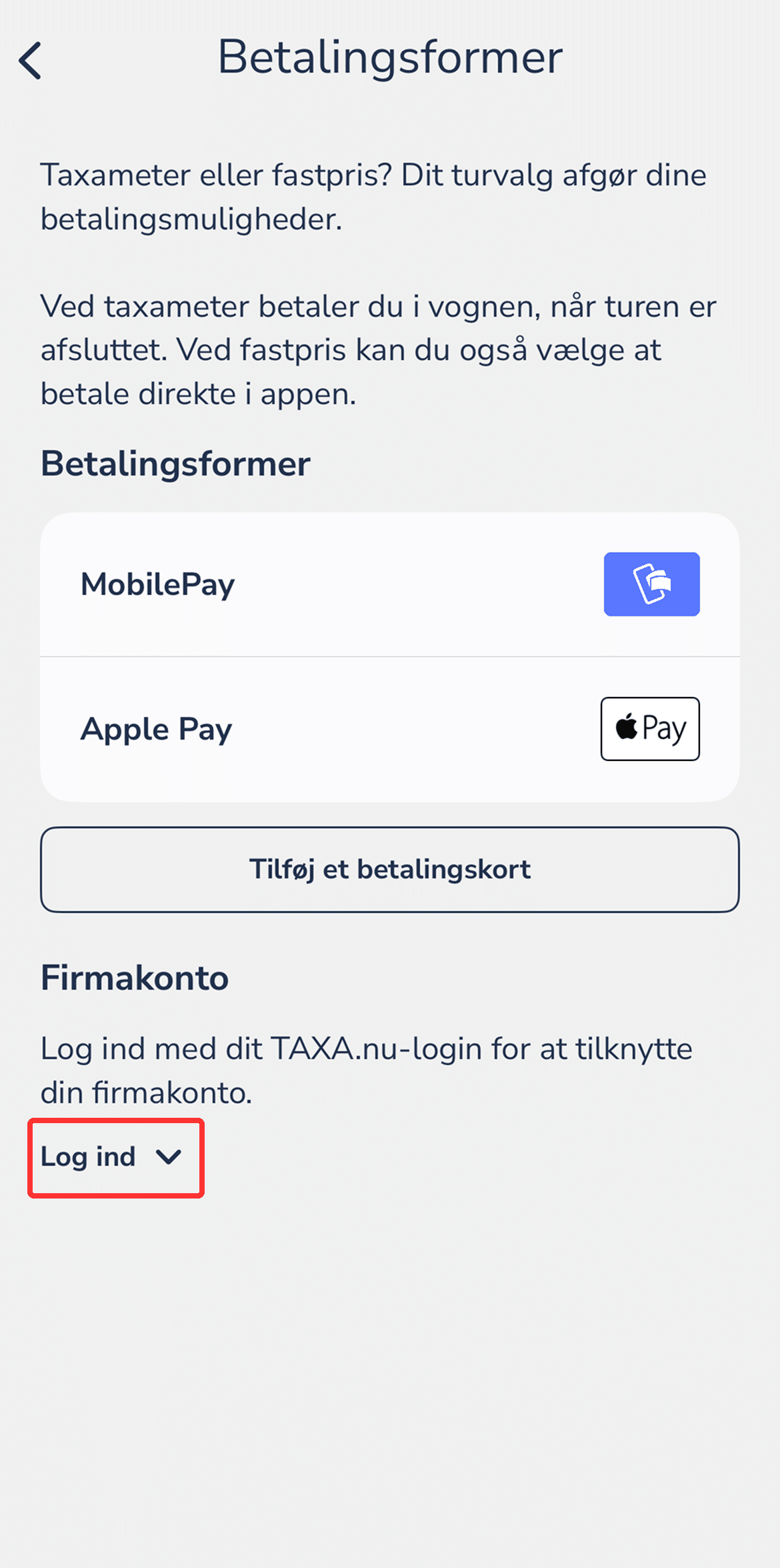 Tilføj jeres firmaaftale i TAXA appen